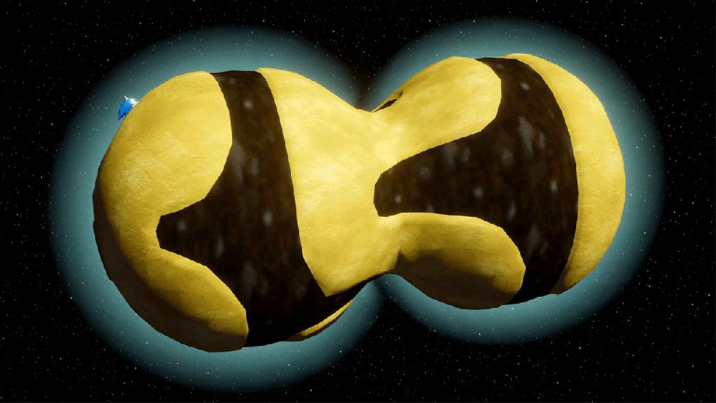 Found in platformers like Mario Galaxy and Sonic Lost World; dynamic, planetoid gravity allows for unique gameplay opportunities where the basics of “up”, “down”, and “forward” are constantly being remixed in exciting ways. Simple shapes like a sphere are easy to visualize and implement. However, accommodating uniquely shaped planetoids presents a challenge to define the direction characters should experience gravitational forces.