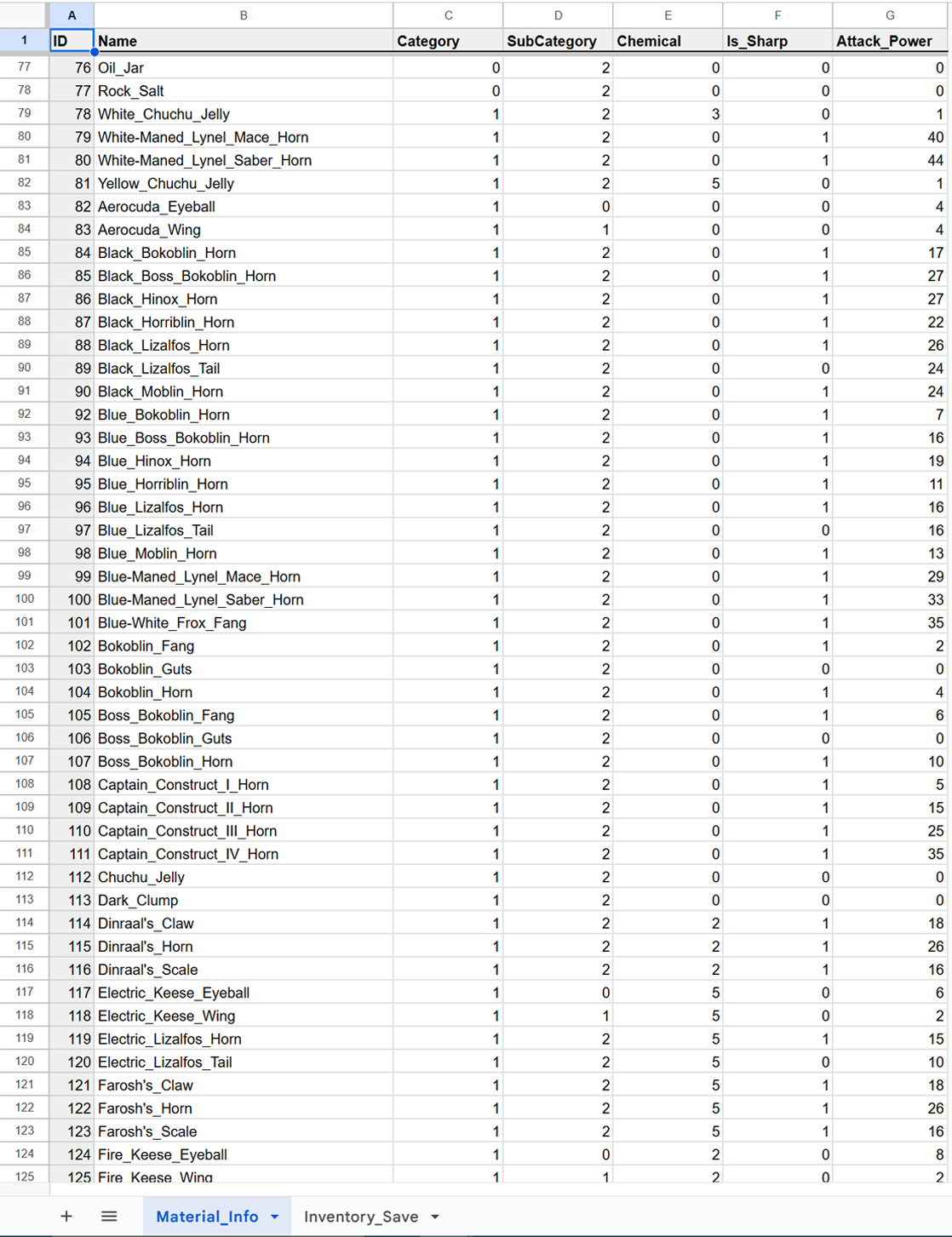 Before starting with code, it’s important to collect assets like images and sprites, fonts, and stats about items. Most of these are readily available online, though I did recreate the material and inventory data in a spreadsheet.