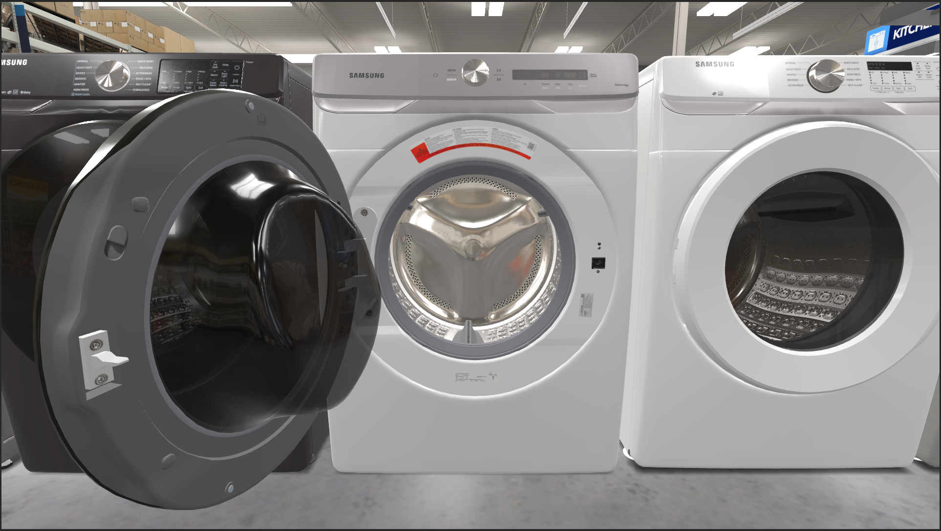 To create a more realistic simulation, several interaction have been added to ReadySet. Including deforming rigs like spring-loaded faucets, rotating hinges, and sliding shelves.